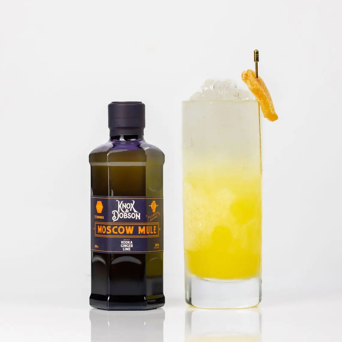 Knox & Dobson's Moscow Mule is a perfectly crafted classic, made with premium vodka, fresh ginger, and lime for a bold, spicy, and refreshingly crisp flavor. Shake well, pour over ice, and enjoy every sip!